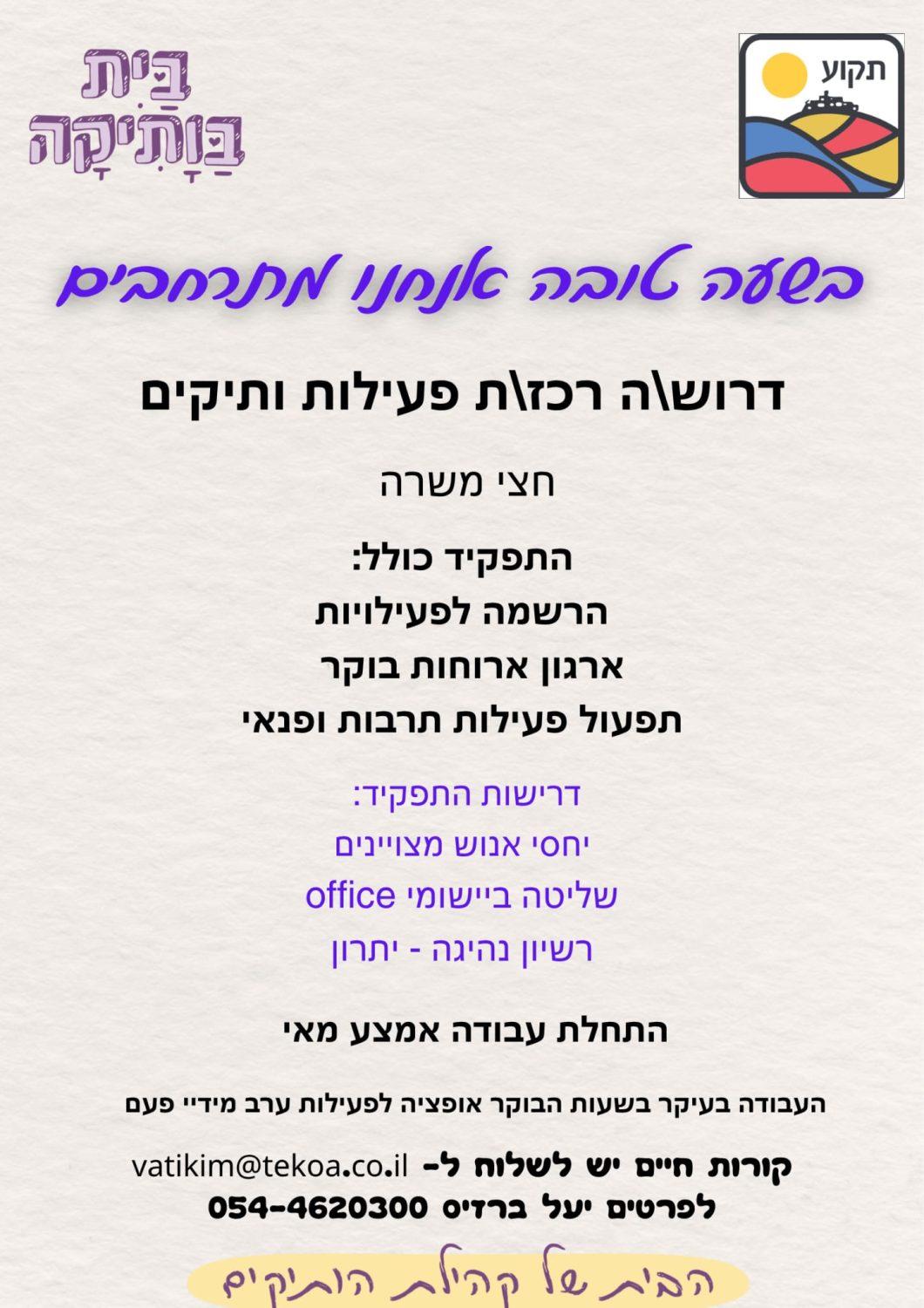 מחפשים מישהו/י שיצטרפו לצוות הנהדר הקיים כדי להרחיב את מה שקיים.