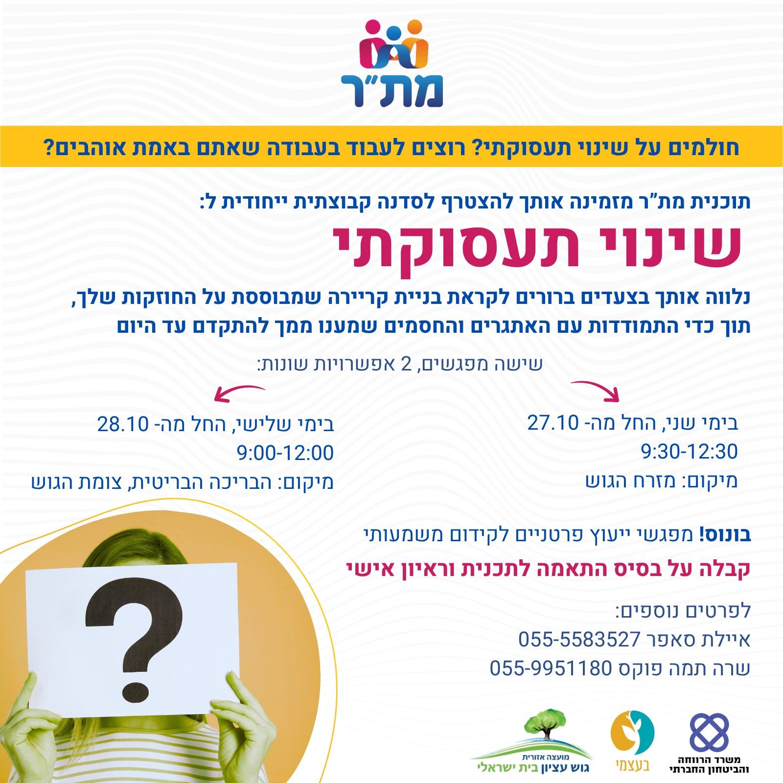 אחרי החגים הגיע- וזו ההזדמנות בשבילך! סדנה קבוצתית אינטימית עם תהליך אישי פרטני, ללא עלות לעומדים בקריטריוני התכנית!